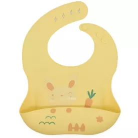 Детский слюнявчик силиконовый с четырьмя застежками и карманом VOLRO 30х23 см Желтый (vol-9690)
