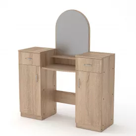 Тумба имеет достаточно элегантный фасад и интересные по дизайну ручки. Хотя она и небольшая по размеру, но за счет 2-х полочек и шухлядок очень практичная для мелких вещей. Я довольна!