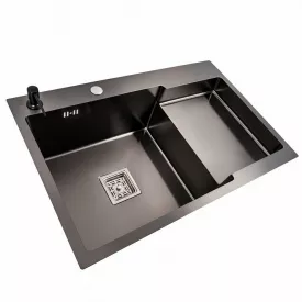 Кухонна мийка Platinex Handmade CM 78*50C L, PVD (з поглибленою полицею та диспенсором), Чорна