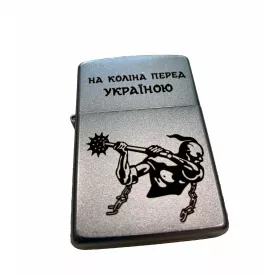 Зажигалка бензиновая ZIPPO Satin Chrome 205 с гравировкой На коліна перед Україною Серебристая (205 HK)