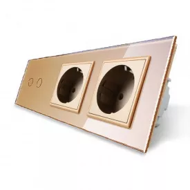 Сенсорний прохідний вимикач Livolo 2 каналу (1-1) із розеткою золото скло (VL-C701S/C701S/C7C1EU-13)