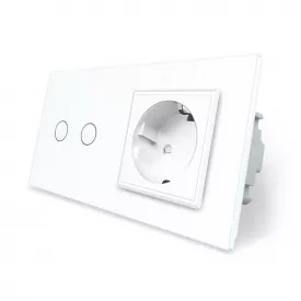 Сенсорний Wi-Fi вимикач Livolo ZigBee 2 каналу з розеткою білий скло (VL-C702Z/C7C1EU-11)