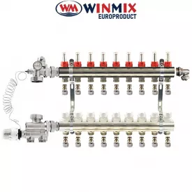 Колектор 1110-11 для системи "ТЕПЛА ПІДЛОГА" Grauss на 11 виходу з термодатчиком і витратоміром (без євроконусів) (Чехія)