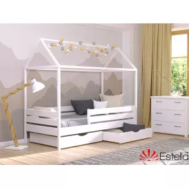 Дитяче ліжко-будиночок Estella Аммі 80х190 см біла з бортиками шатром дерев'яна колір-107