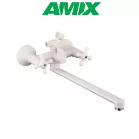 Змішувач для ванни з термопластику AMIX Pablo-140 EURO SET White (зі шлангом та лійкою), Білий