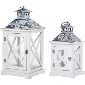 Декоративний ліхтар Зимній будиночок 60см дерев’яний білий з LED-підсвіткою BonaDi DP43189