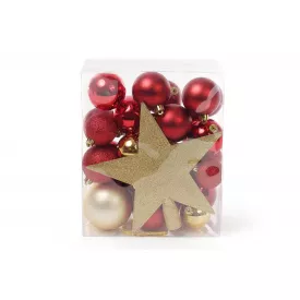 Набір новорічних куль BonaDi з верхівкою на ялинку 8/5/6 см 29 шт Червоний із золотим (147-595)