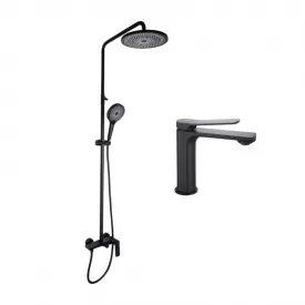 Комплект змішувачів Qtap Slavonice: Душова система QTSLA113BLM45900 + Змішувач для раковини QTSLA1042103B