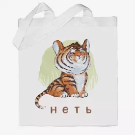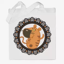 Эко-сумка шоппер с принтом Тигр в кругу Кавун Бежевый