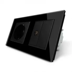 Розетка двомісна комбінована Силова ТВ Livolo чорне скло (VL-C7C1EU1VK0-12)