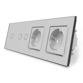 Одноклавішний вимикач з потрійною розеткою Livolo золотий скло (VL-C7K1/FCTC16A/FCTC16A/FCTC16A-8AP)