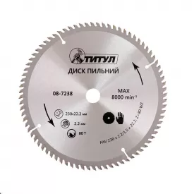 Диск пильный для дерева с твердосплавными напайками ТИТУЛ 230х22.2х80Т (08-7238) | 431.1 грн |