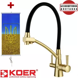 Змішувач для кухні з виходом під осмос KB-72006-01, Чехія (колір хром) чорний силіконовий гусак