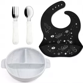 Набор детской посуды 2Life Волна тарілка та прибори Y1 та слинявчик Космос Чорний (v-12065)