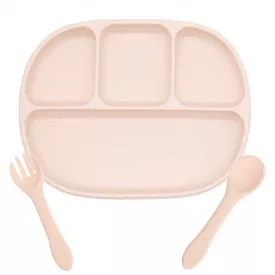 Набор трёх-секционная силиконовая тарелка ложка вилка 2Life Y4 3 шт Пирсиковый (vol-9764) 440 грн/шт Купити