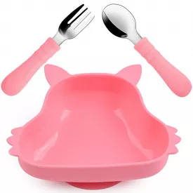 Набір Ложка силіконова із утриманням форми вигину для годування дитини Рожевий + Слюнявчик (vol-790)