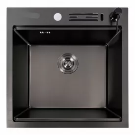 Кухонна мийка Platinex Handmade 60*45 PVD (з диспенсером сифоном та кріпленням), Чорний