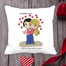Подушка с принтом Love is "Любовь это... когда он носит тебя на руках" Белый Кавун П000100