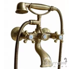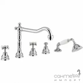 Змішувач врізний до борту ванни з ручним душем на 5 отворів Bugnatese Revival 480 DO золото