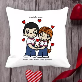 Подушка с принтом Love is "Любовь это... выехать за город наслаждаться природой" Белый Кавун П000072