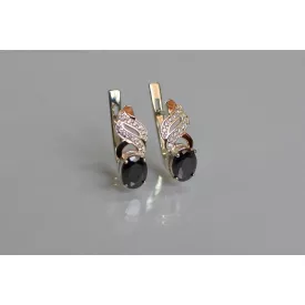 Срібні сережки з зеленими вставками 125s-13 Чорний (Sil-797)