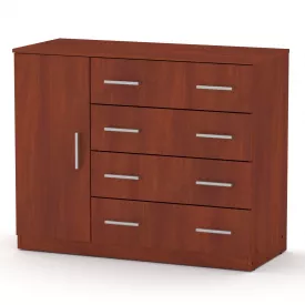 У нас небольшая комната и для хранения вещей я решила приобрести комод. Комоды. которые состоят из одних выдвижных ящиков мне не подходили и я выбрала Компанит 5+2. В комод у меня вместилось очень много вещей. По высоте комод идеален для меня, сверху я расположила вазу с цветами и периодически кладу разные мелочи. К качеству комода у меня претензий не имеется. Купили его мы в разобранном виде, но со сборкой проблем не было, муж собрал его без проблем. Переваги: Очень вместительный, много ящиков и полок Недоліки: не обнаружила
