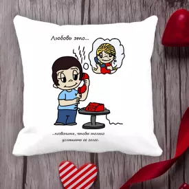 Подушка с принтом Love is "Любовь это... позвонить, чтобы только услышать ее голос" Белый Кавун П000086