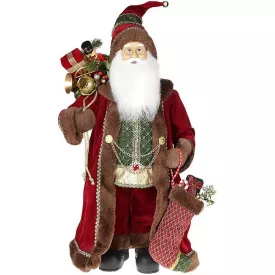 Новорічна фігурка Санта з шкарпеткою 60см (м'яка іграшка), бордо з коричневим Bona DP73694