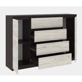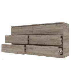 Широкий комод Мастер Форм з 6 висувними шухлядами телескопи Дуб крафт сірий (150х37,6х73 см)