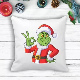 Подушка с новогодним принтом Гринч The Grinch "OK" Белый Кавун П003598