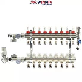 Колекторний вузол у зборі для системи "ТЕПЛА ПІДЛОГА" WInmix на 9 виходів (балка латунь)
