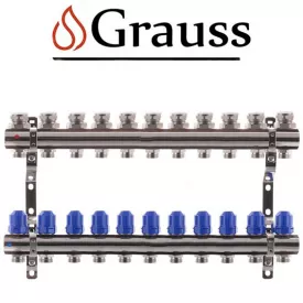 Колектор 1100-11 Grauss на 11 виходів з термостатичними клапанами для опалення (без євроконусів) (Чехія)
