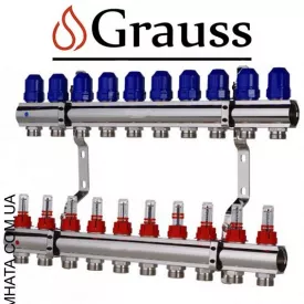 Колектор 1110-10 для системи "ТЕПЛА ПІДЛОГА" Grauss на 10 виходов з термодатчиком і витратоміром (без євроконусів) (Чехія)