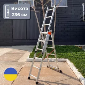 | Універсальна драбина 6 м алюмінієва трисекційна 3 х 9 сходинок Стандарт | 6400 грн |