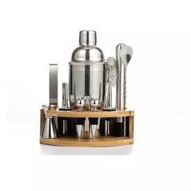 Набор для бара BAR для приготовления коктейлей с деревянной подставкой 750 мл 12 предметов Серебристый (C051212)