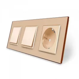 Комплект одноклавішних вимикачів із розеткою золотий скло Livolo (VL-C7K1/K1/FCTC16A-6AP)