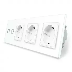 Сенсорний Wi-Fi вимикач Livolo ZigBee 2 каналу з трьома розетками білий скло (VL-C702Z/C7C3EU-11)