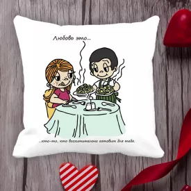Подушка с принтом Love is "Любовь это ... позволить ей управлять машиной, даже если она незастрахованна" Белый Кавун П000039
