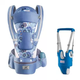 Хипсит Эрго-рюкзак кенгуру переноска и Вожжи-ходунки с подкладками Baby Carrier 6 в 1 20 кг Синий (vol-8972)