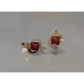 Серебряные серьги Sil с золотыми пластинами 038s2-3 Гранат (Sil-1207)
