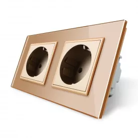 Розетка подвійна із заземленням Livolo 16А золото скло (VL-C7C2EU-13)