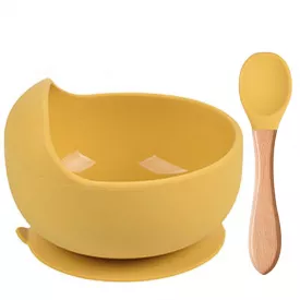 Набор силиконовая круглая тарелка для первых блюд и ложка 2Life Y24 2 шт Бежевая (vol-10168)