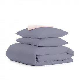 Евро комплект на резинке Cosas STORMY CS2 Ранфорс 200х220 см Стальной/Розовый