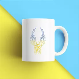 Кружка чашка белая с принтом "Синий треугольник желтый герб и надпись Ukraine" Кавун 363.55 грн