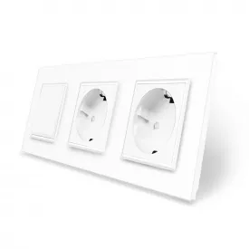Двоклавішний вимикач з подвійною розеткою сірий скло Livolo (VL-C7C2EUK2-15)