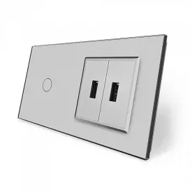Сенсорний вимикач 2 сенсора 2 USB сірий скло Livolo (VL-C702/2USB-15)