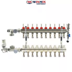 Колекторний вузол у зборі для системи "ТЕПЛА ПІДЛОГА" WInmix на 10 виходів (балка латунь)