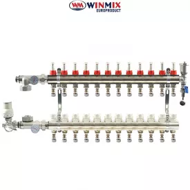 Колекторний вузол у зборі для системи "ТЕПЛА ПІДЛОГА" WInmix на 12 виходів (балка латунь)