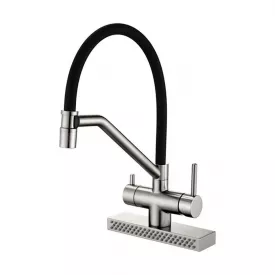 Змішувач для кухні під осмос з "водоспадом" KB-74027-02 Нержавіюча сталь силіконовий чорний гусак, Чехія
