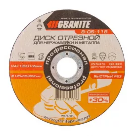 Диск абразивний відрізний для металу та нержавіючої сталі 125*1,2*22,2 мм Granite GM (8-04-123)